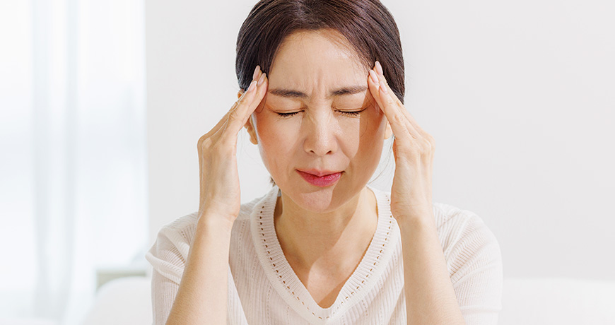 뒷골이 뻣뻣하거나 당기는 느낌이 있다.