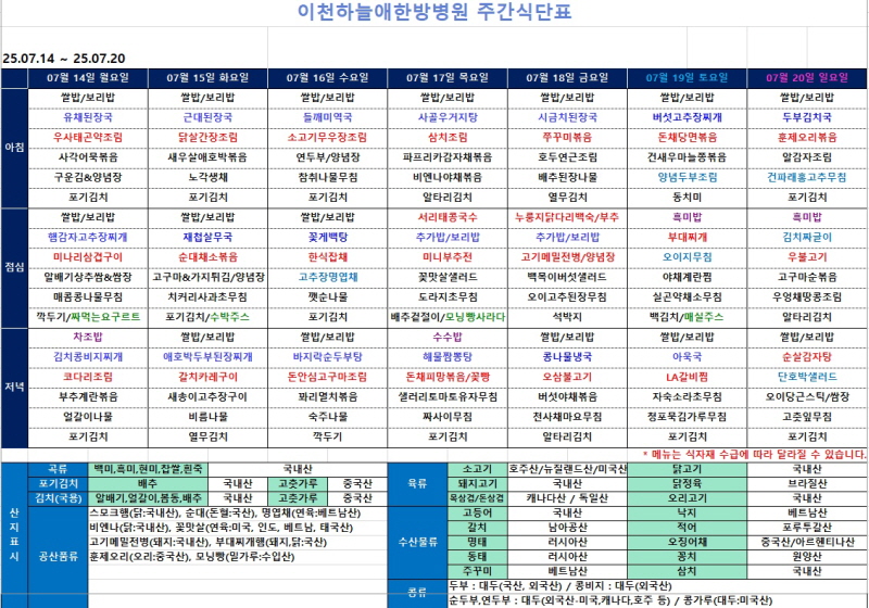 [이천하늘애한방병원 7월 3주차 주간식단표]
